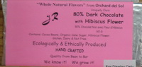 Joanne, our chocolatier is handcrafting an 80% Dark Chocolate sweetened with organic cane sugar. Along with just the plain 80% bar you will find she has incorporated bits of organic ginger, hibiscus, cranberry or another favorite, coffee beans into her varieties. These bars are popular with those looking to accent a good meal or a glass of red wine.